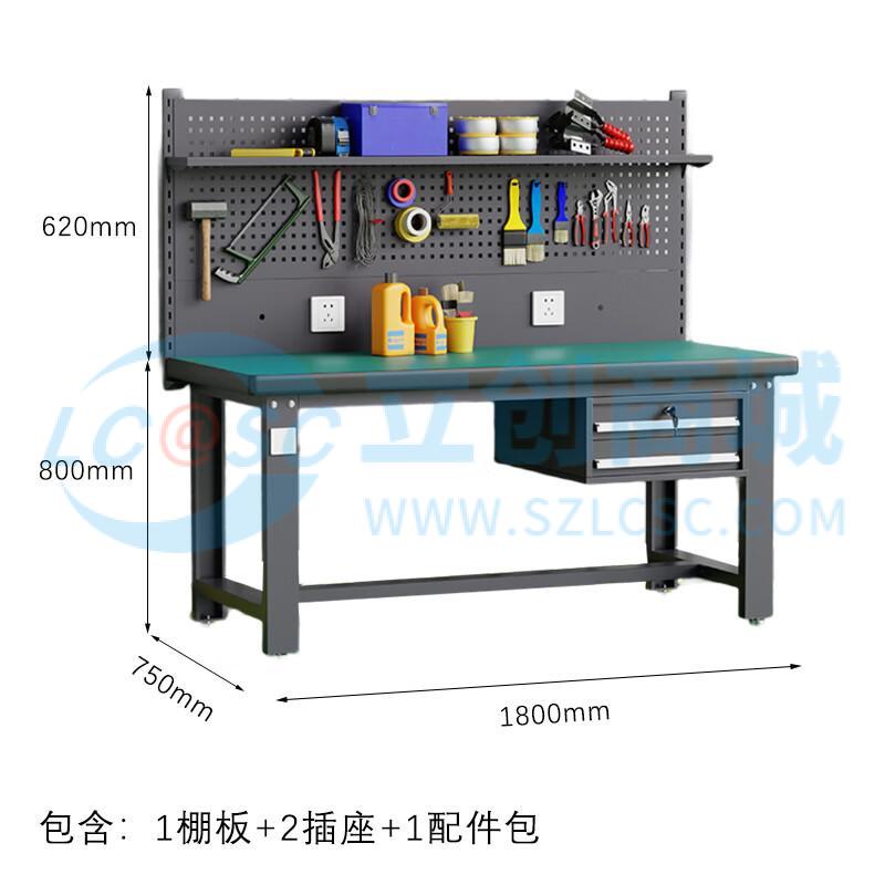 荣将重型防静电工作台操作台钳工车间工作台实验桌1.8米吊二抽单挂