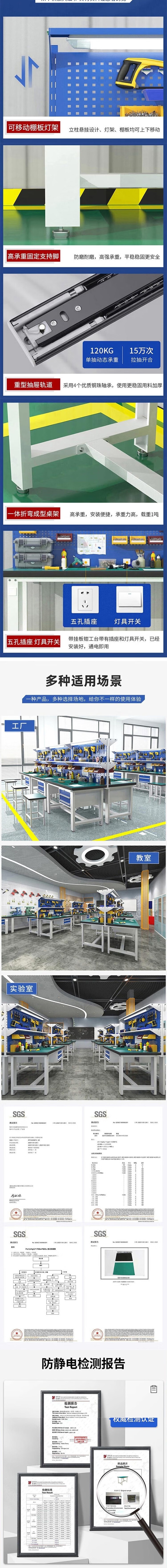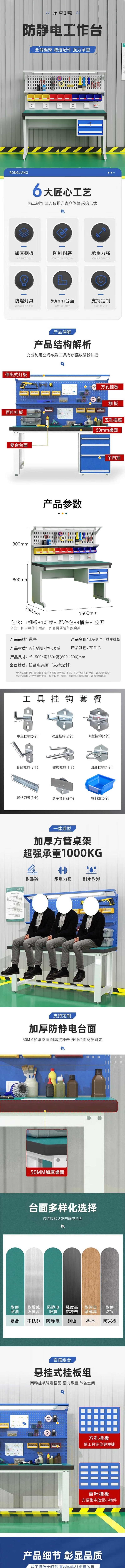 荣将防静电工作台重型钳工操作台桌带灯带抽屉流水线实验室 工字脚