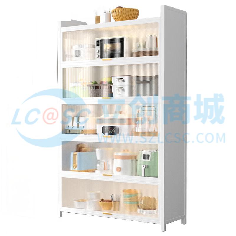 荣将厨房置物架落地家用收纳柜餐边柜带门收纳橱柜六层白90cm