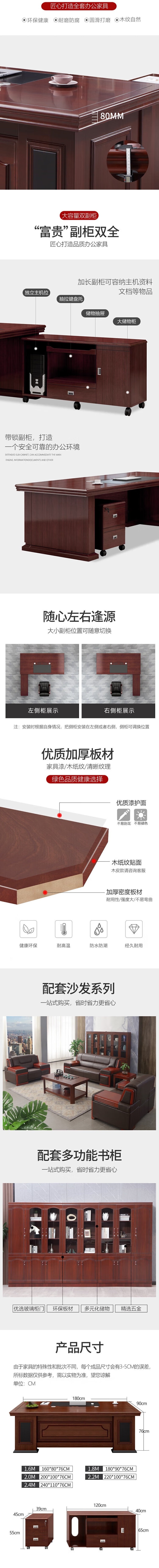 荣将办公桌老板桌大班台班桌中式主管经理桌办公室总裁桌1.8米单桌