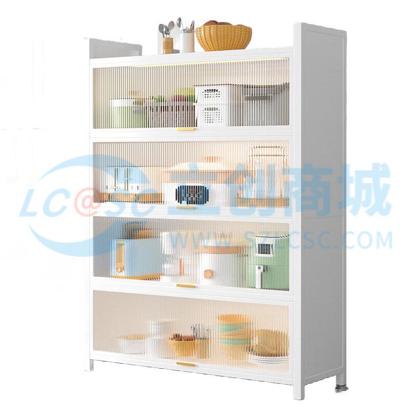 荣将厨房置物架落地家用收纳柜餐边柜带门收纳橱柜五层白80cm