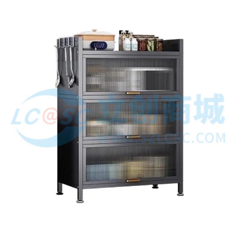 荣将厨房置物架落地家用收纳柜餐边柜带门收纳橱柜四层灰90cm