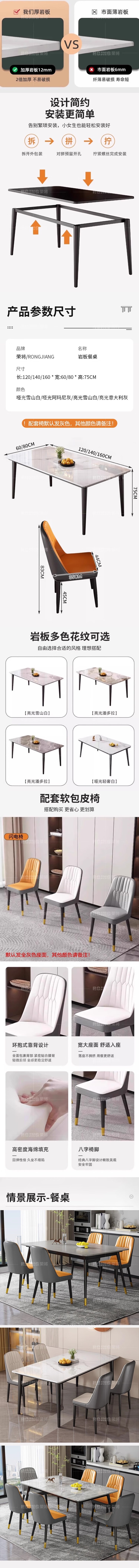 荣将岩板餐桌家用餐桌椅组合轻奢现代简约小户型客厅桌子灰1.2单桌