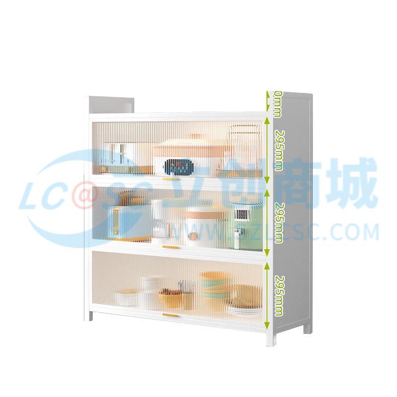 荣将厨房置物架落地家用收纳柜餐边柜带门收纳橱柜四层白100cm