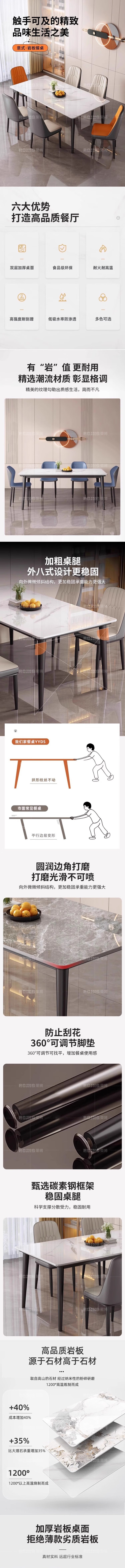 荣将岩板餐桌家用餐桌椅组合轻奢现代简约小户型客厅桌子白1.4+6椅