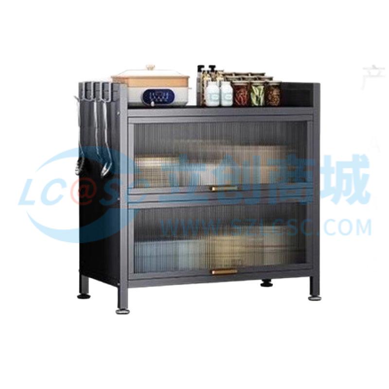 荣将厨房置物架落地家用收纳柜餐边柜带门收纳橱柜三层灰90cm