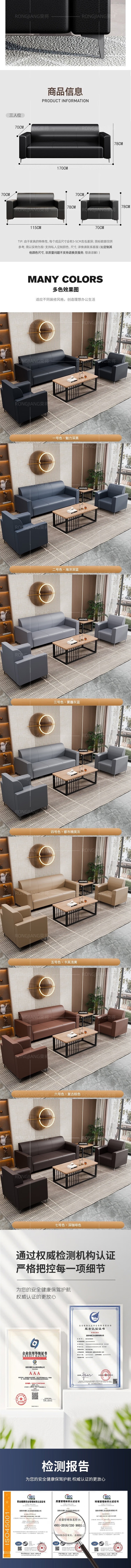 荣将简约现代沙发商务接待沙发会客皮沙发办公沙发3+2+1组合乳胶
