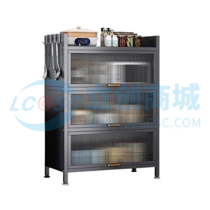 荣将厨房置物架落地家用收纳柜餐边柜带门收纳橱柜四层灰70cm