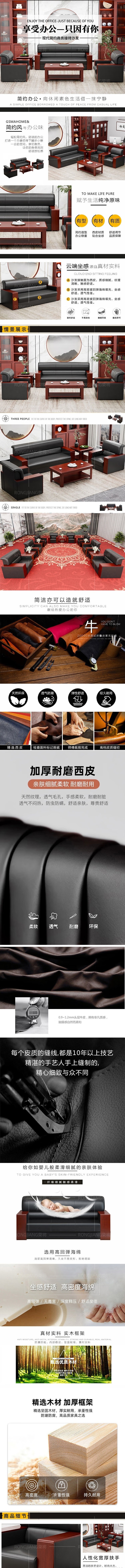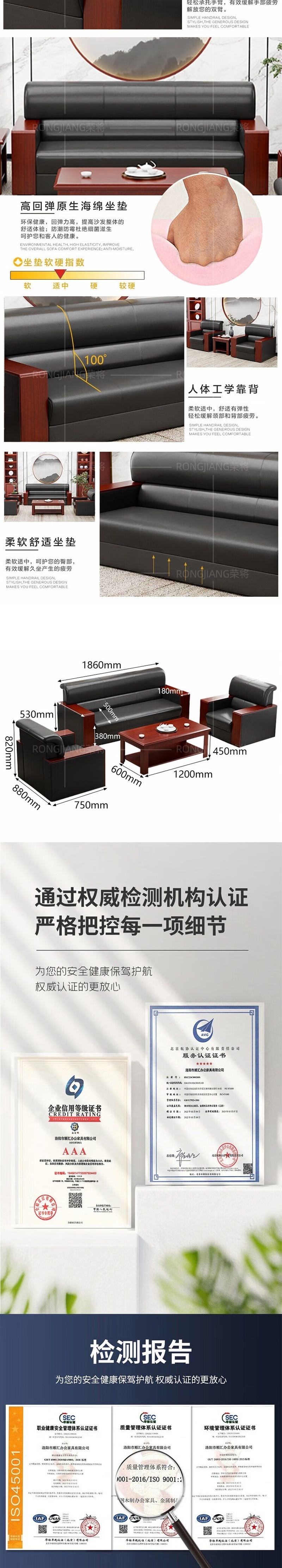 荣将商务洽谈沙发客厅会客接待沙发中式皮沙发办公室沙发茶几套装组合