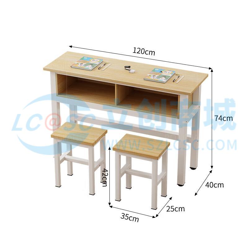 荣将学生学习课桌椅辅导班教室培训书桌带抽屉学习桌120cm双人桌含凳