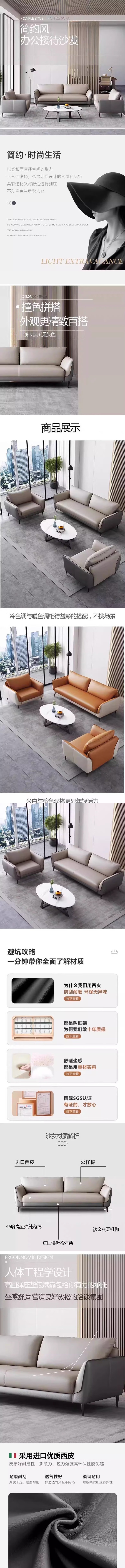 荣将办公沙发商务接待会客沙发简约现代休息区沙发茶几组合西皮3+2+1