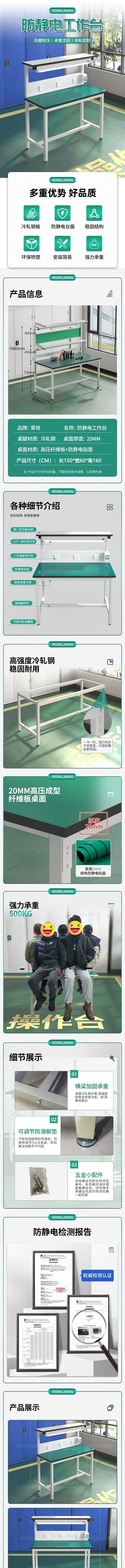 荣将防静电工作台操作台工厂流水线车间工作台防静电实验桌三层工作台