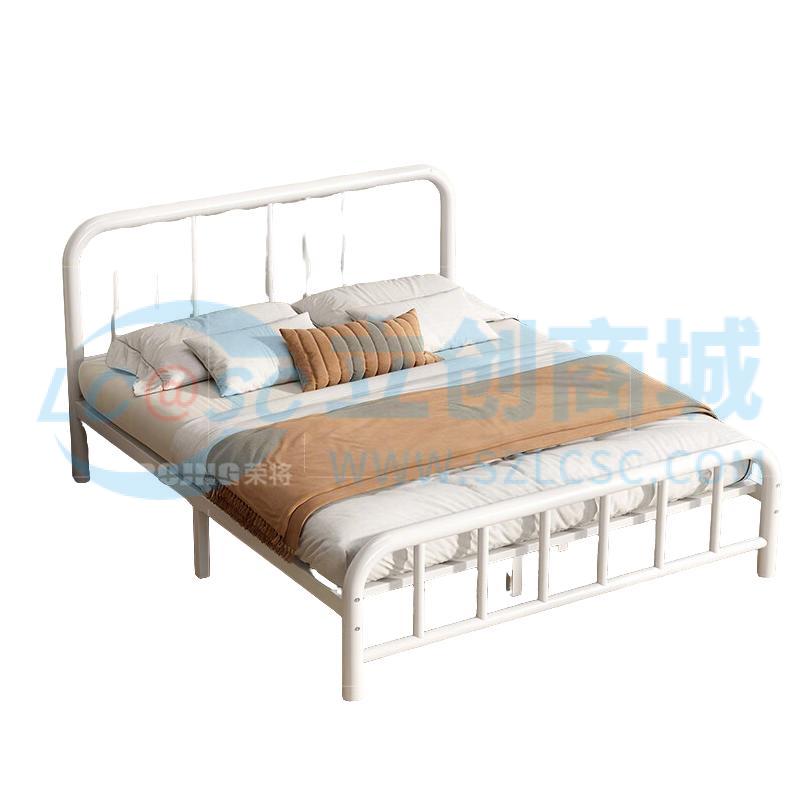 荣将铁艺床铁床铁架床1.2x2米单人床卧室出租屋简易床带弹簧床垫白色