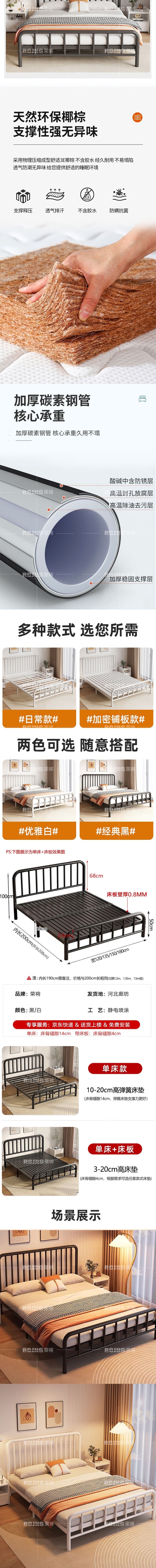 荣将铁艺床铁床铁架床1.5x2米双人床卧室出租屋简易床带床板床垫黑色