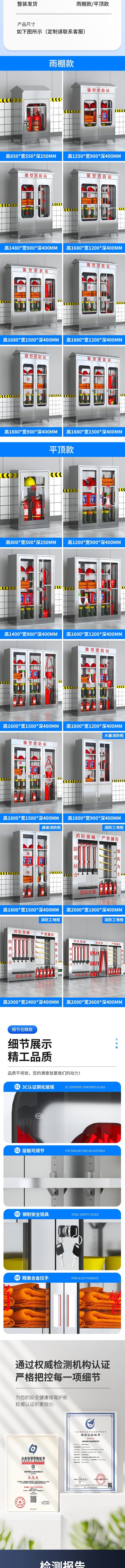荣将不锈钢消防柜微型消防站全套消防器材应急物资柜展示箱含3C器材