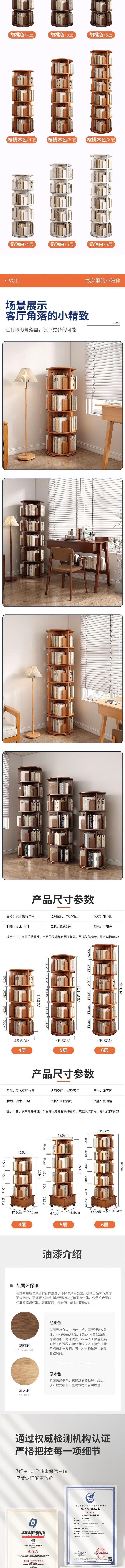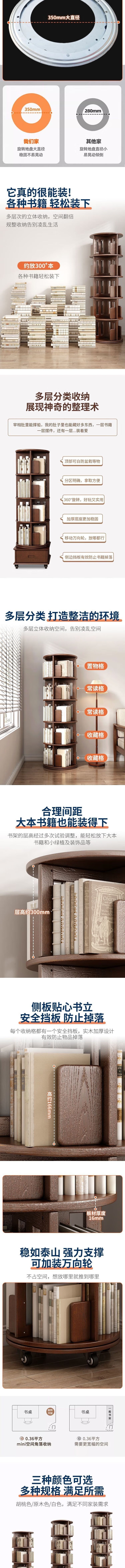 荣将旋转书架落地实木书柜360度可旋转层架落地书架置物架