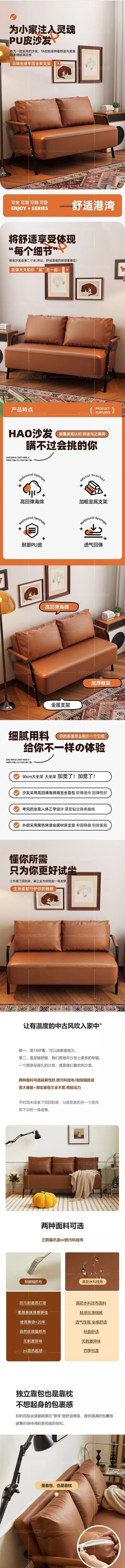 荣将简约休闲皮沙发双人沙发小户型铁艺沙发办公小沙发客厅复古风沙发