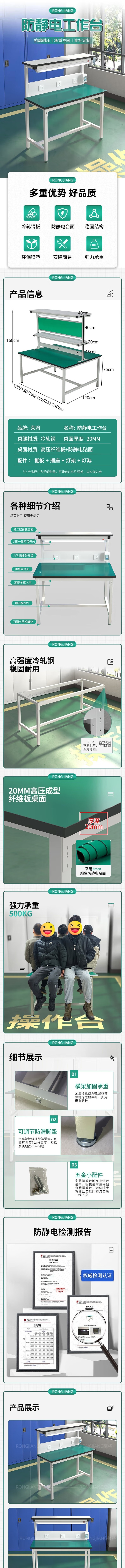荣将防静电工作台维修操作台静电桌车间货物打包操作台实验桌三层双面