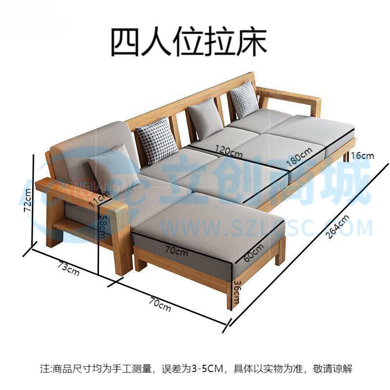 荣将客厅接待会客沙发床新中式沙发原木风四人位实木沙发罗汉床推拉床