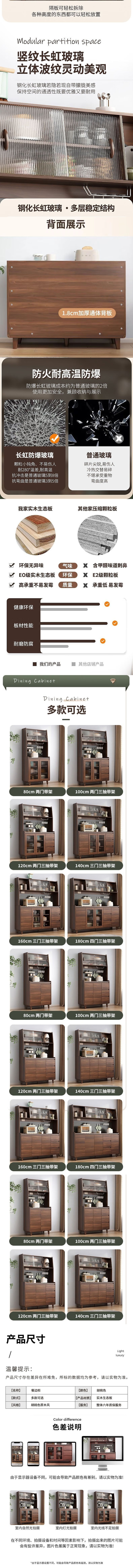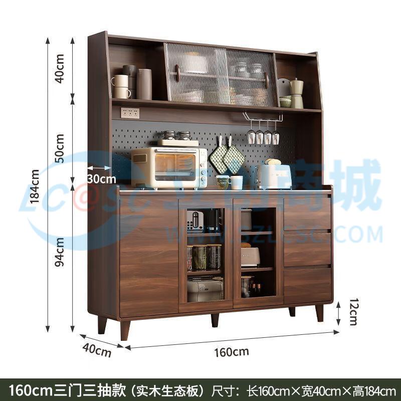 荣将餐边柜一体靠墙收纳柜胡桃色家用储物柜厨房橱柜 160cm胡桃玻璃扇