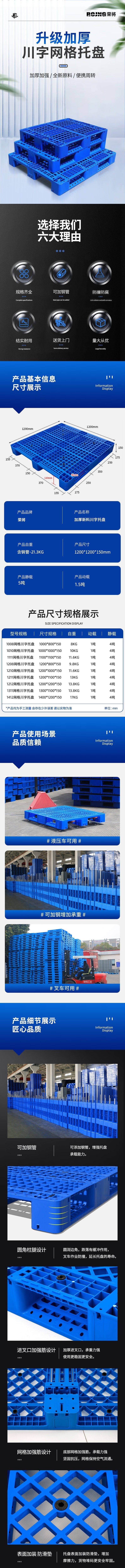 荣将塑料托盘叉车货架托盘仓库防潮板网格川字托盘120*120*15cm加10钢