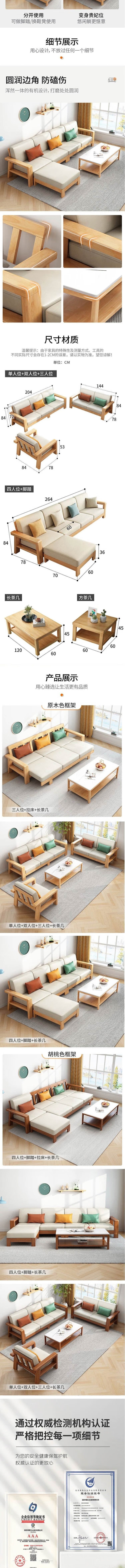 荣将实木沙发新中式原木风小户型客厅沙发北欧简约布艺沙发组合 1+1+3