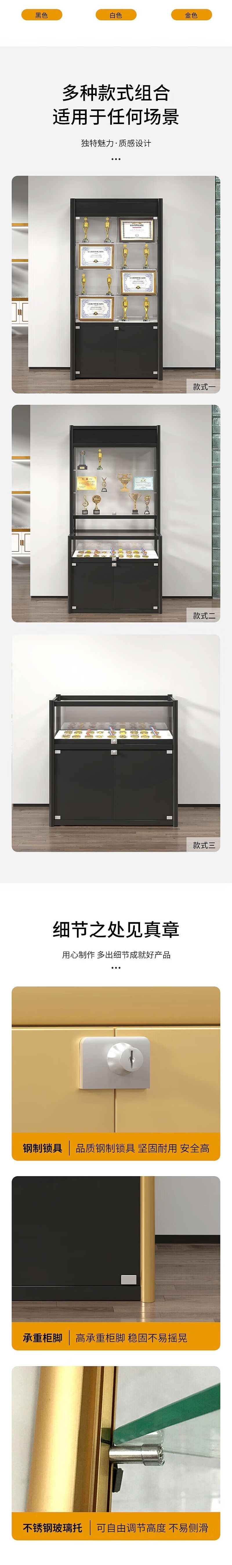 荣将烟柜展示奖章展览柜手办透明玻璃展示架 黑色高柜100*30*200cm