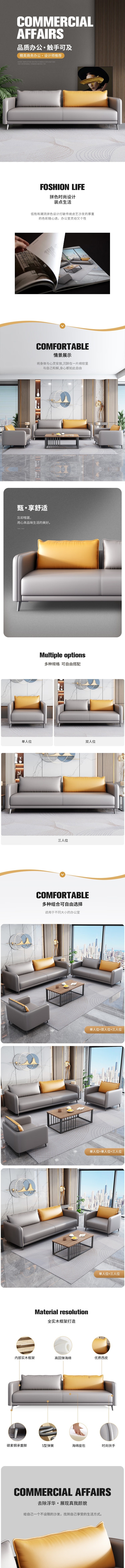 荣将会客洽谈沙发商务接待室乳胶沙发简约现代办公沙发1+1+3组合