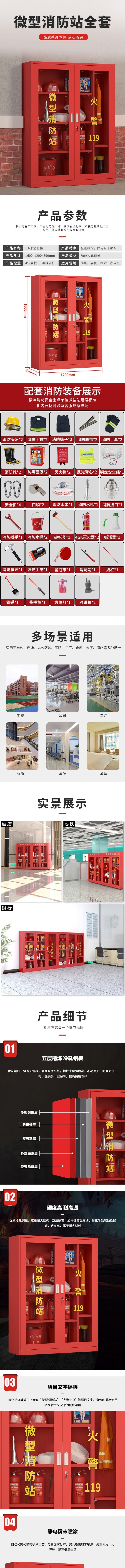 荣将消防柜微型消防站全套消防器材应急柜箱 高1600宽1200mm含器材