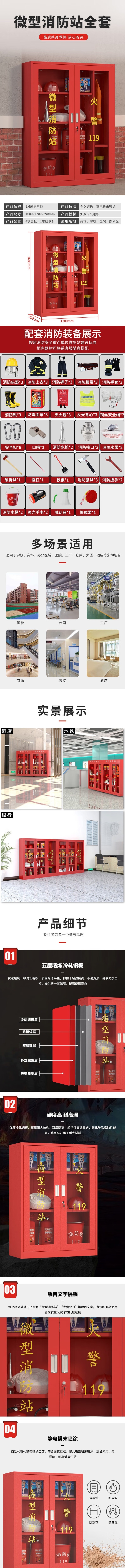 荣将消防柜微型消防站全套消防器材应急柜箱 高1600宽1200mm含3C器材