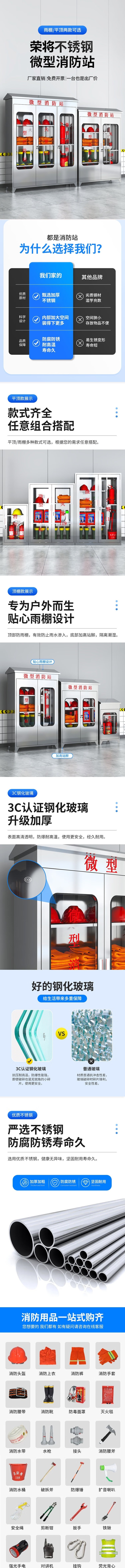 荣将不锈钢消防柜微型消防站全套消防器材应急物资柜展示箱