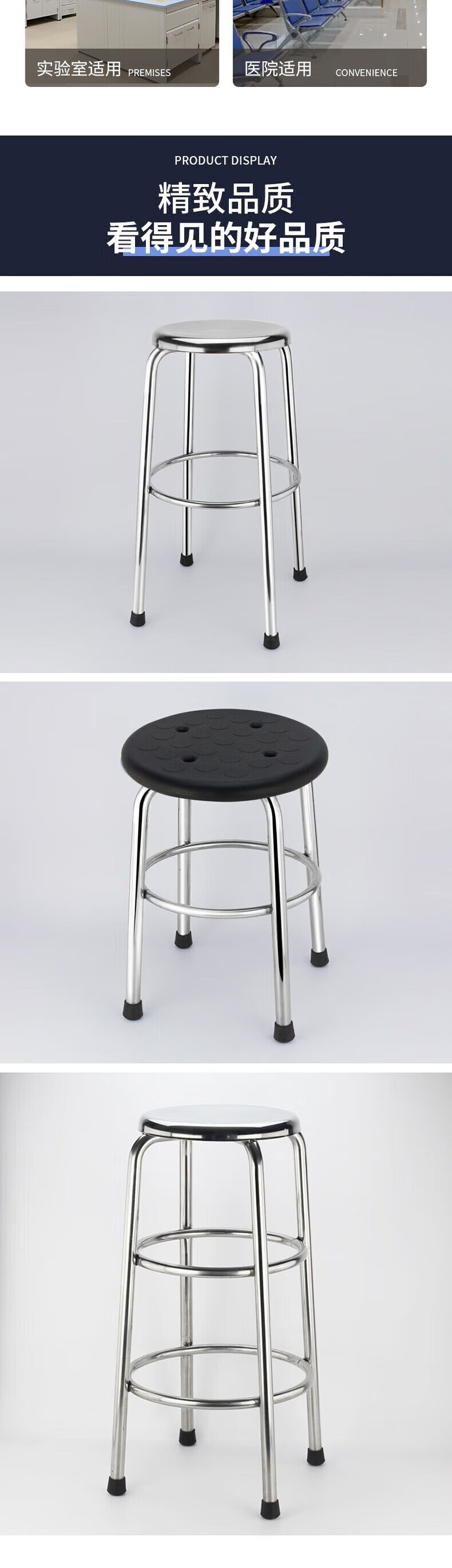 荣将不锈钢圆凳工厂车间工作凳无尘实验室四角凳55cm 201