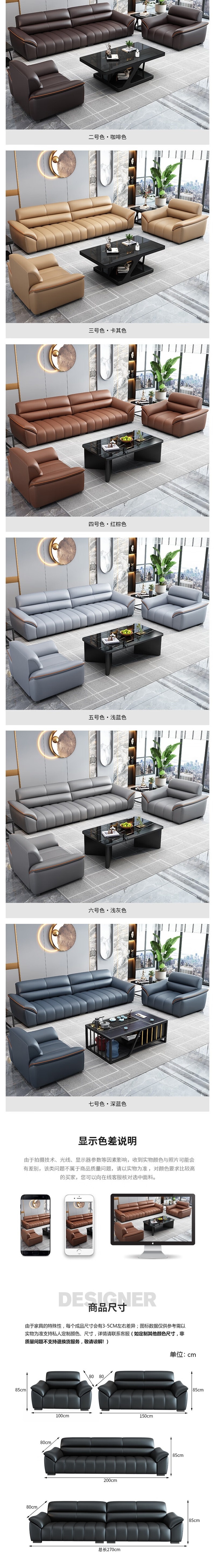 荣将办公沙发接待室会客休息区现代简约皮艺沙发商务洽谈沙发三人位