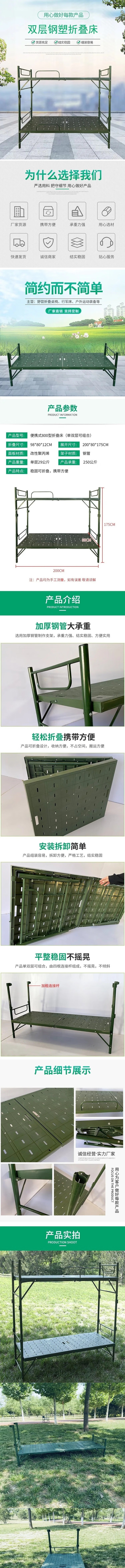 荣将户外折叠床便携式双层床行军床自驾野外钢制训练床军绿色