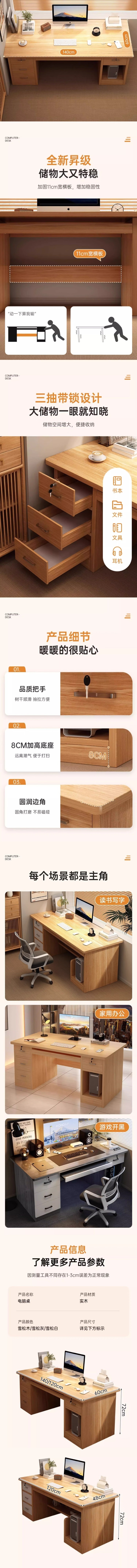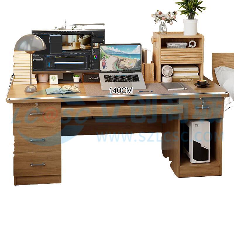 荣将实木书桌电脑桌办公桌家用卧室台式简约学习桌1.4米烟霞木色四抽