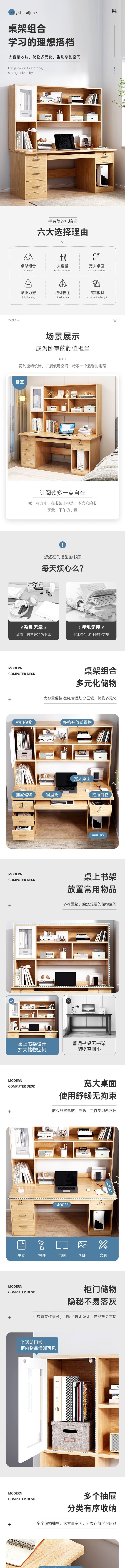 荣将简约现代抽屉一体化办公桌电脑桌学习桌工作台桌椅组合1.2米三抽