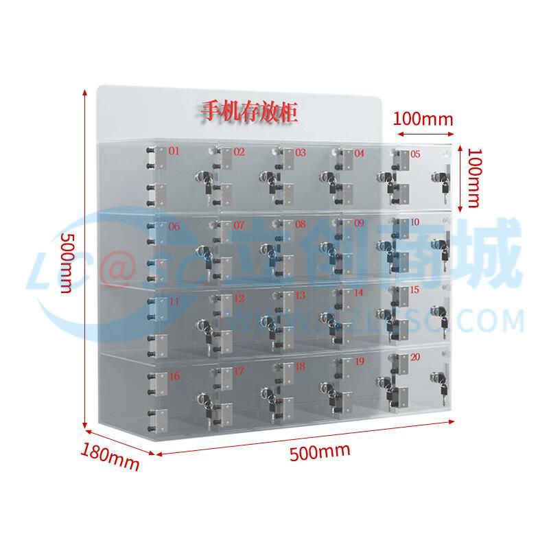 荣将亚克力手机存放柜保管柜可挂墙收纳箱火种箱带锁透明存放箱20门