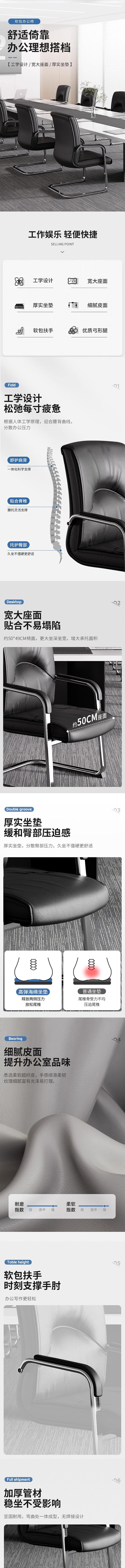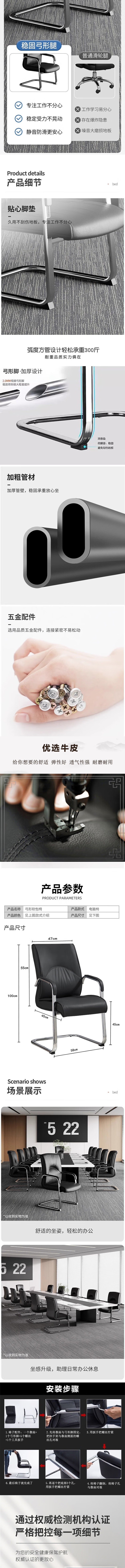 荣将办公椅弓形椅电脑椅会议室椅子老板椅舒适久坐家用座椅黑色牛皮款