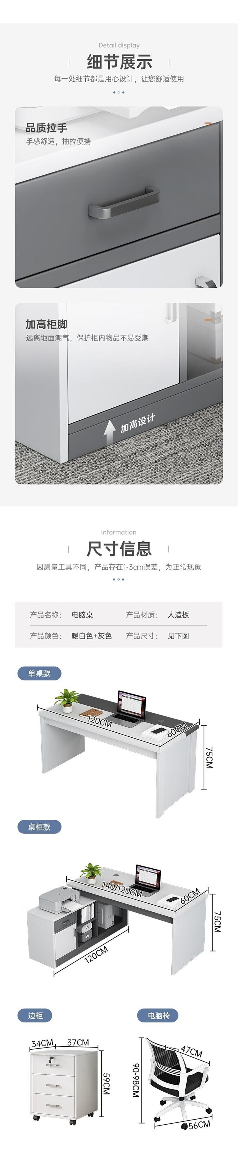 荣将简约现代职员办公桌电脑桌工作台员工工位办公室1.2米桌+侧柜