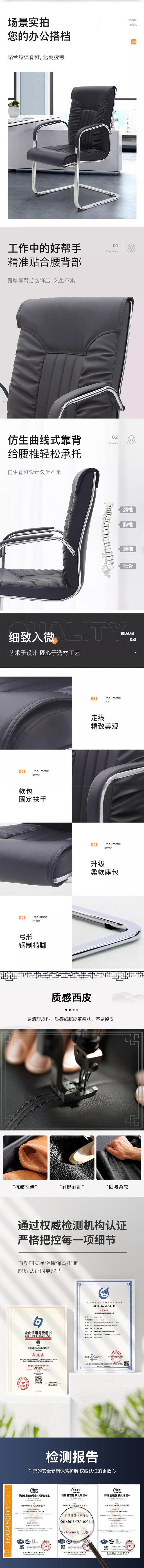 荣将办公椅老板椅职员会议椅子家用电脑椅弓形椅座椅黑色皮椅海绵坐垫