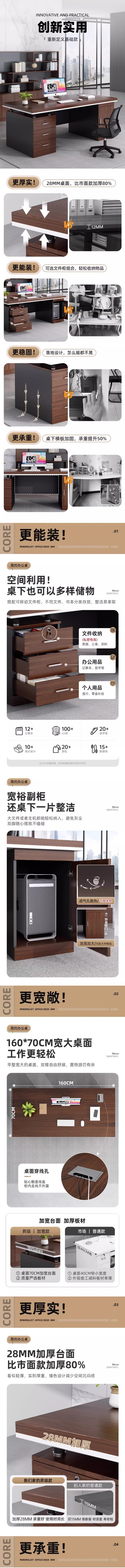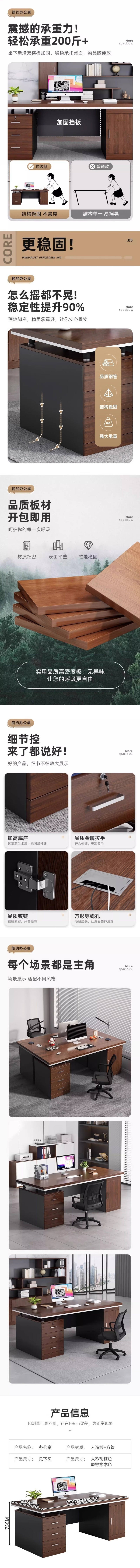 荣将简约办公桌台式电脑桌工位职员书桌写字台学习桌1.2米大杉胡桃色