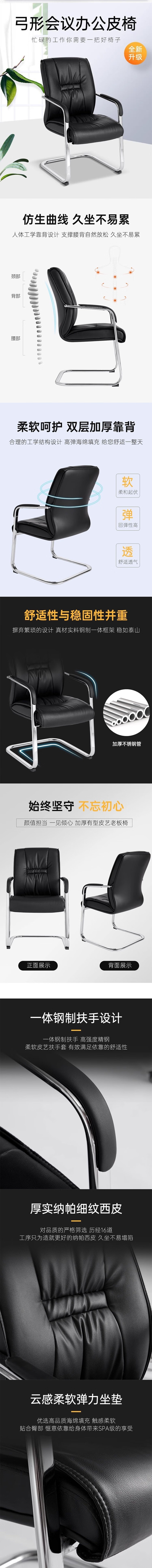 荣将办公椅老板椅职员会议椅子家用电脑椅弓形椅座椅黑色皮椅乳胶坐垫