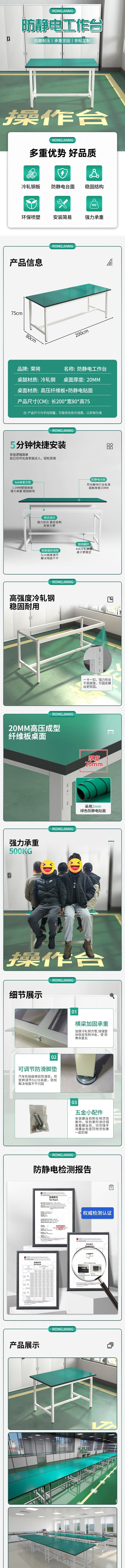 荣将防静电工作台操作台工厂流水线车间工作台防静电实验桌单层工作台