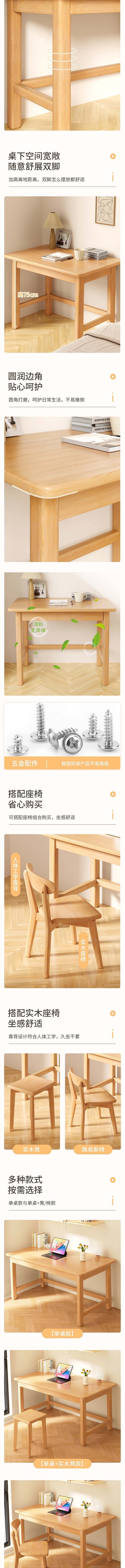 荣将实木书桌卧室电脑桌台式办公桌家用学习写字桌简约工作台100*50cm