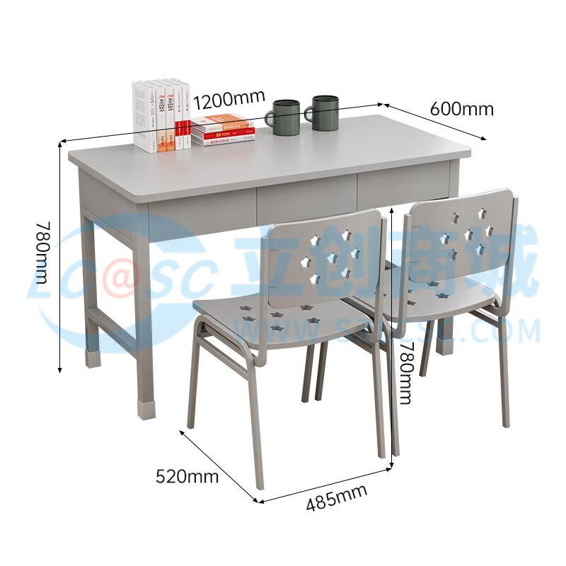 荣将钢制办公桌宿舍学习桌书桌阅览桌工作台三抽学习桌加两椅