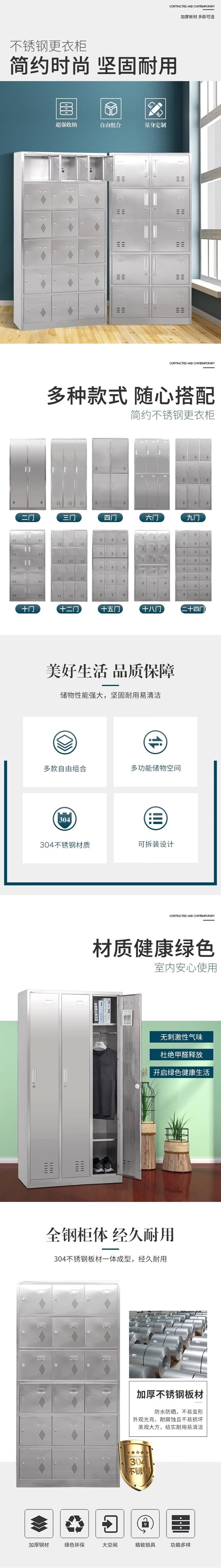 荣将201不锈钢更衣柜员工储物柜车间员工柜健身浴室存包柜 8门更衣柜