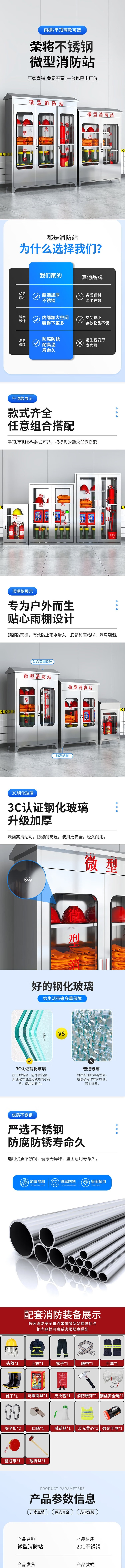 荣将不锈钢消防柜微型消防站全套消防器材应急物资柜展示箱含器材