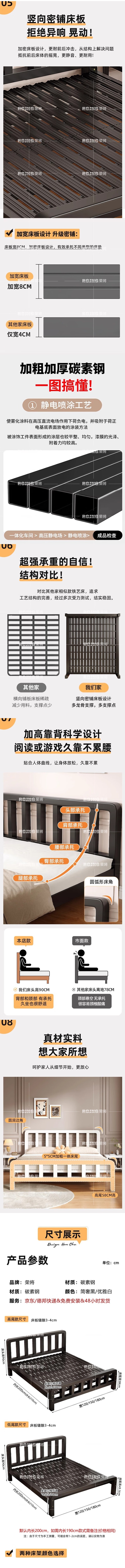 荣将铁艺床双人床铁架床铁床1.2x2米卧室出租屋简易床低尾带床垫白1.2