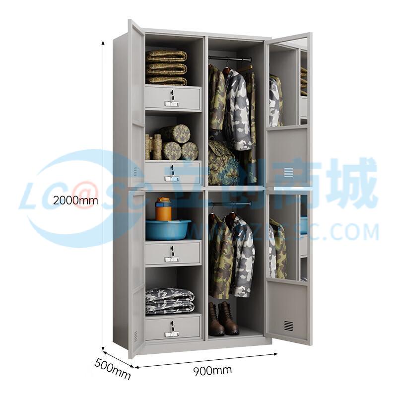 荣将钢制四门内务柜铁皮更衣柜衣帽鞋服存放柜宿舍收纳储物柜双人衣柜
