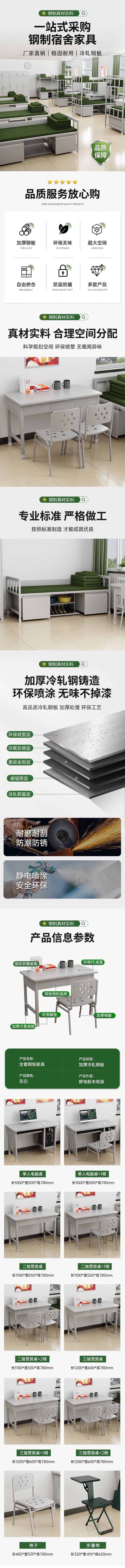 荣将钢制办公桌宿舍学习桌书桌阅览桌工作台三抽学习桌
